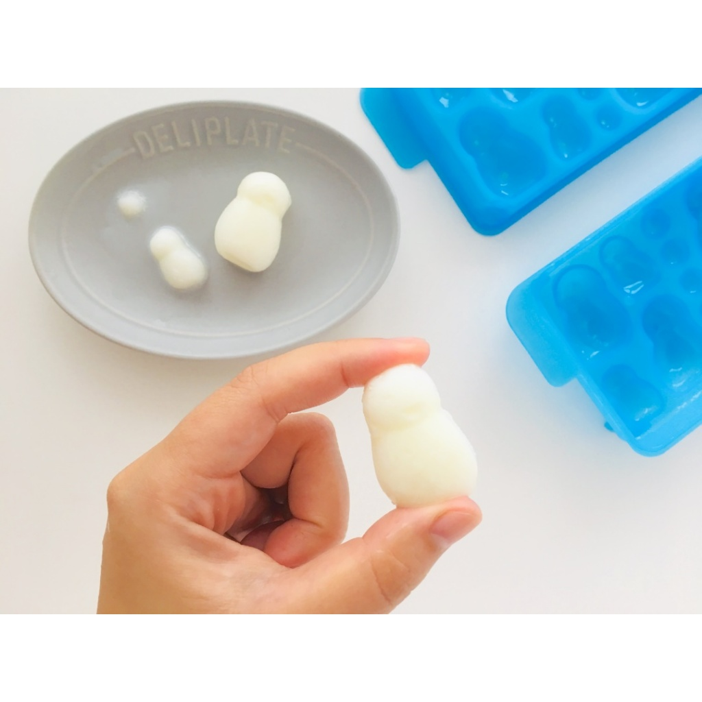 3. Sau khi viên đá đã đông, hãy nhẹ nhàng bóp khay để lấy những viên đá hình người tuyết ra dễ dàng.