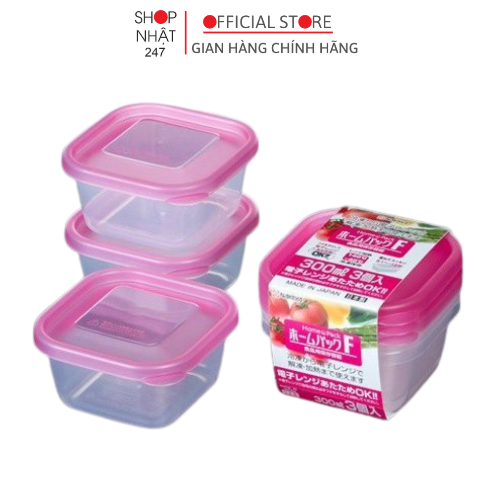 Set 3 Hộp Thực Phẩm 300ml Nắp Hồng Nội Địa Nhật Bản – Nakaya