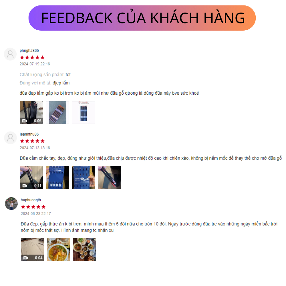 - Quy cách: Set 5 đôi đũa
