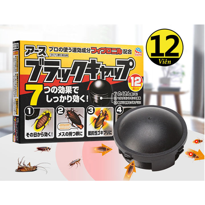 Earth-Chem Black Cap 12 viên (SKU 4901080206213) là sản phẩm nội địa Nhật được nhiều người tiêu dùng lựa chọn để hỗ trợ kiểm soát gián thuận tiện: dạng viên mồi nhỏ gọn, dễ đặt đúng điểm gián hay qua lại, góp phần giúp môi trường bếp gọn sạch hơn khi sử dụng đúng cách.